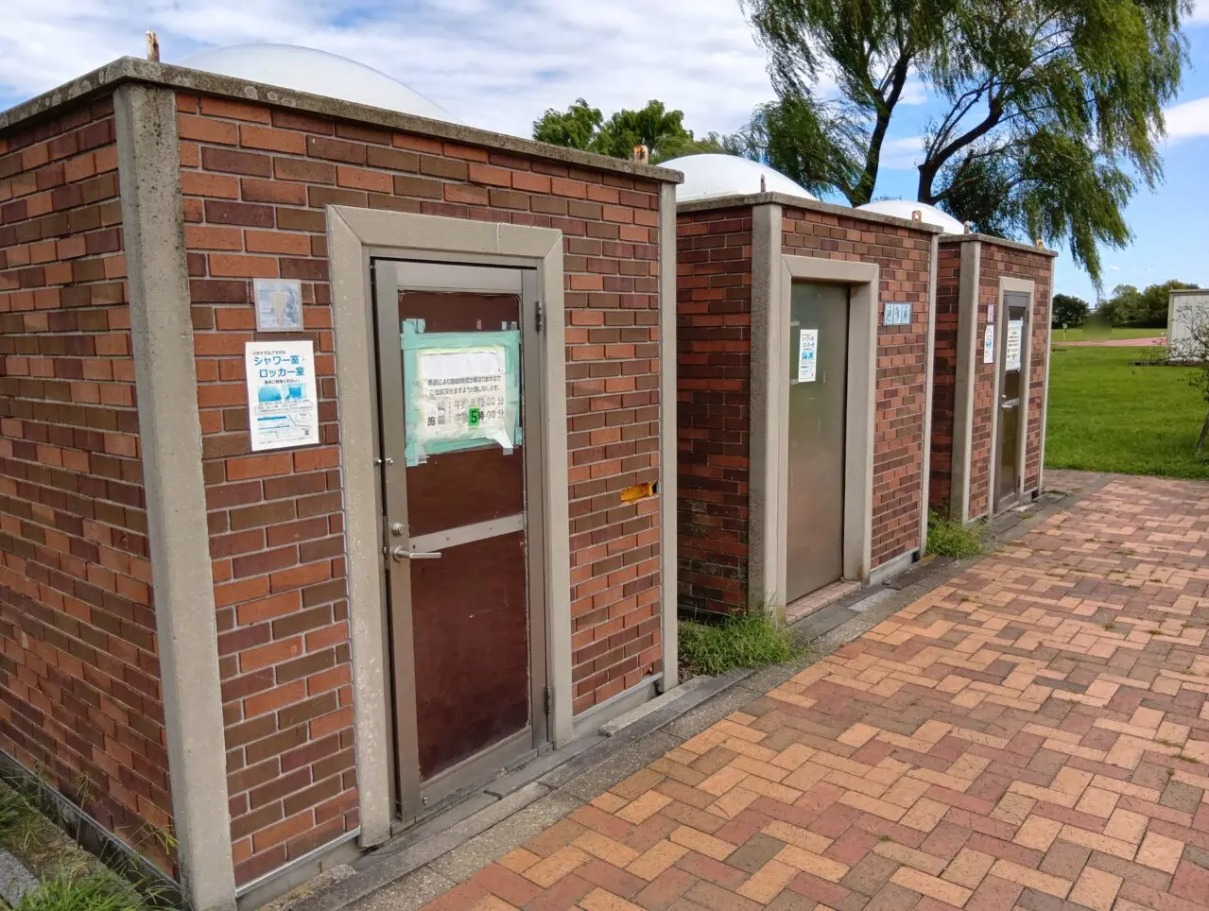 後ろに水場とトイレが有ります。