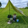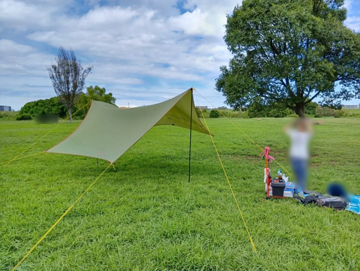 タープを張ってバーベキューの準備をします。