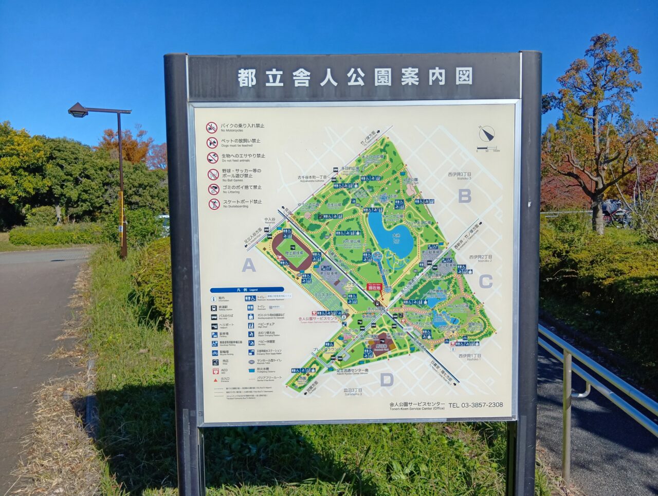 公園がとても広いので、この案内図は必須。紅葉スポットや池の場所をチェックしながら回るのがおすすめです。舎人公園は申請が必要ですがバーベキューが出来る場所もあります。