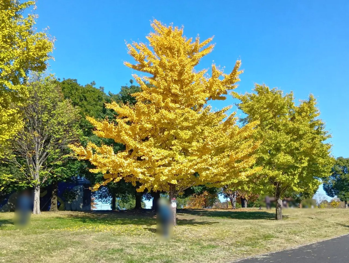 特に目を引いたのが、鮮やかな黄色に色づいた大きな銀杏の木!青空とのコントラストが本当に綺麗で、思わず立ち止まって写真を撮りたくなります。