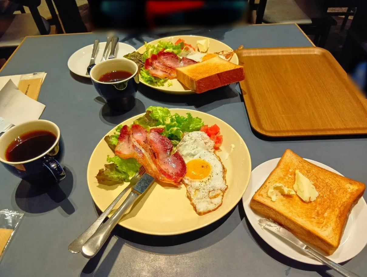 CBブレックファーストは、注文を受けてから調理してくれるのがポイント!できたてのベーコンや目玉焼きの美味しいこと…!