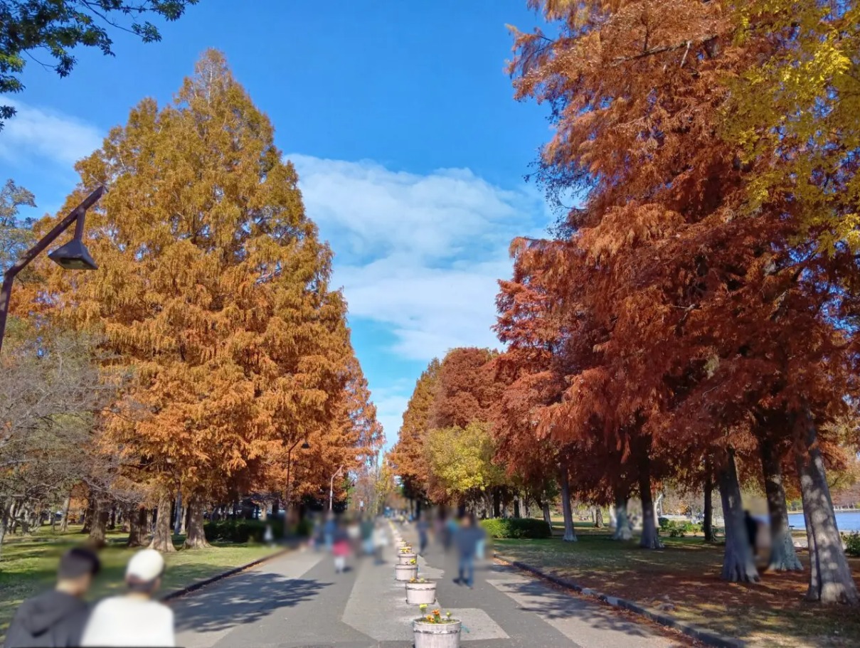 🧡圧巻!黄金に輝く「メタセコイア並木」の紅葉
