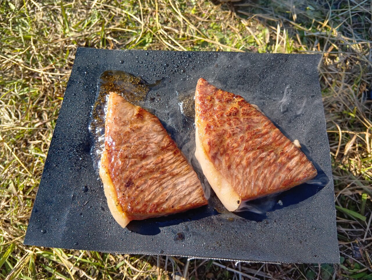 「ジュ~ッ!」という心地よい音とともに、香ばしい匂いが漂います。固形燃料でも、じっくり熱を通せばしっかりとした焦げ目がつきます。外はカリッと、中はジューシー。このクオリティのバーベキューが、こんなに簡単なセットで楽しめるなんて、正直驚きです。